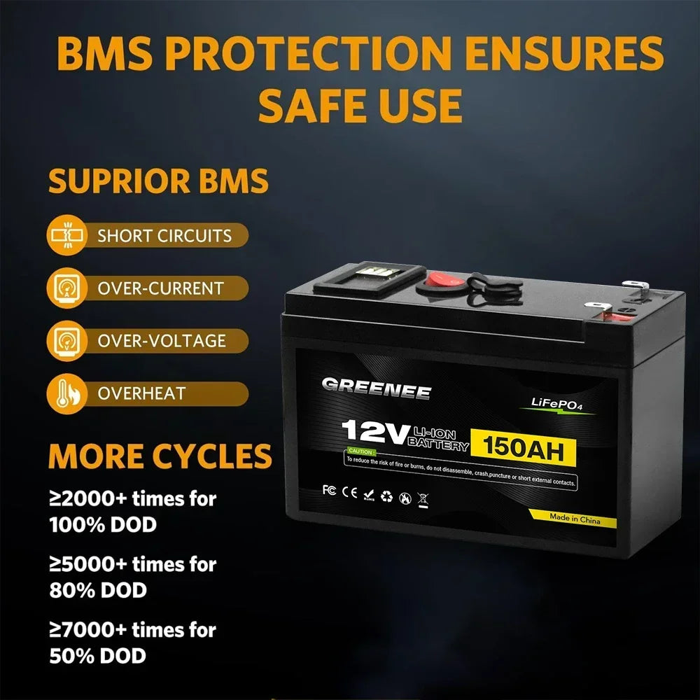 Batería de Litio 12V 150Ah Ciclo Profundo con BMS - Para Solar, RV, Marino