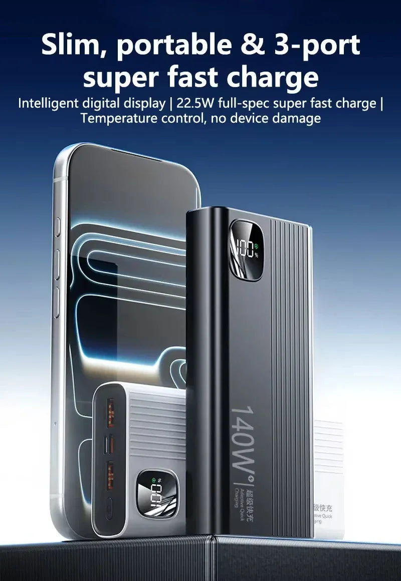 Powerbank 140W Carga Súper Rápida - Batería Portátil Alta Capacidad