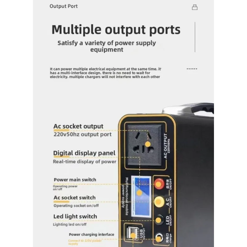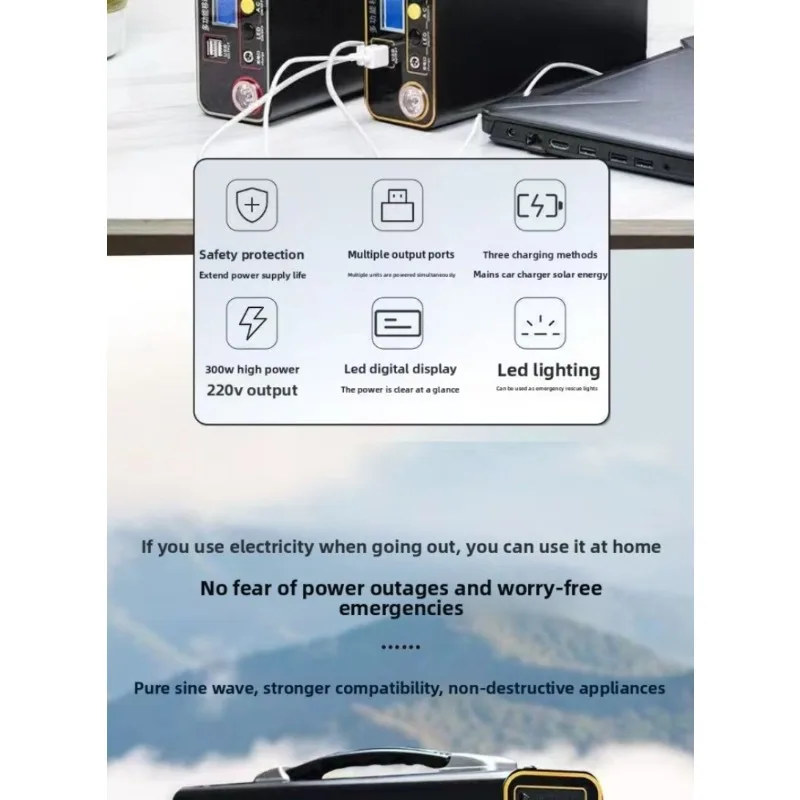 Diseñada específicamente para alimentar laptops, tablets y dispositivos móviles. Salida AC 220V estable para cargadores originales, múltiples puertos USB para carga simultánea.